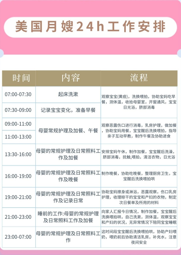 美国月嫂24小时工作流程 24-hour work flow of American confinement nanny